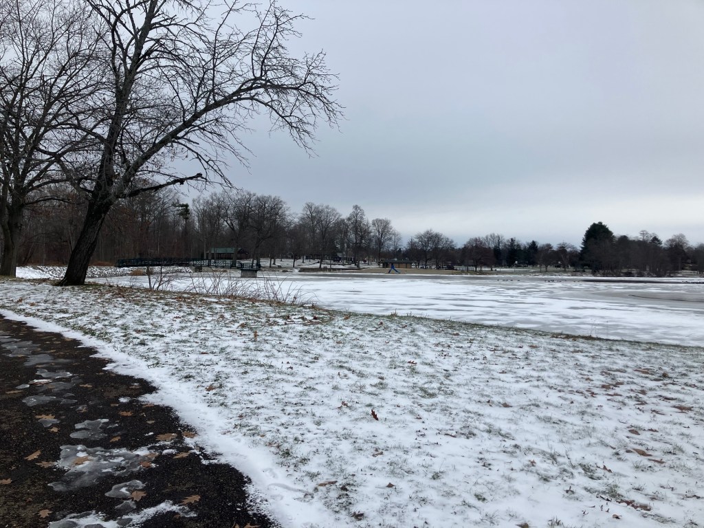 I completed four loops through Yates Park and surrounding residential streets. The paths were snow-covered and icy in places, which required extra attention. Conditions were typical winter footing. The route did not fully hug the shoreline, and about half the run was through residential streets.