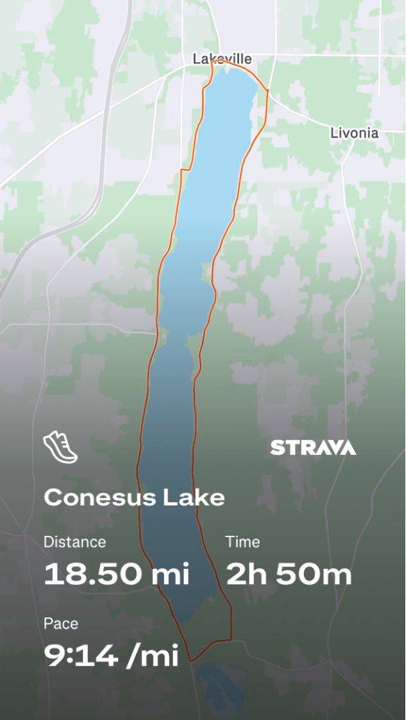 Conesus felt like the logical next step โ a Finger Lake that was big enough to feel like an accomplishment, but still manageable for my final long run while training for my 50k in February.